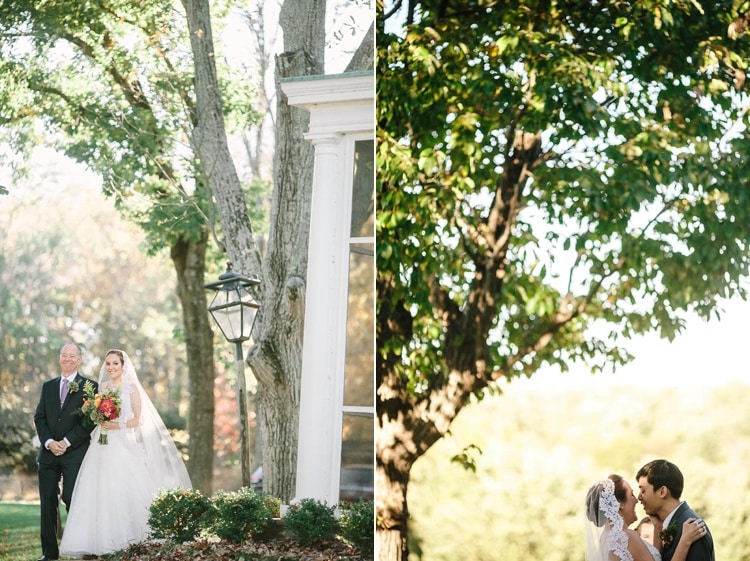 We also picked Murray Hill as a venue for this very reason: it’s an estate right on the banks of the Potomac, so our ceremony had the beautiful changing treeline over the river as a backdrop. The barn also really sold us on the venue: a converted llama stable with wonderful high rafters and old chandeliers that we used for our reception.