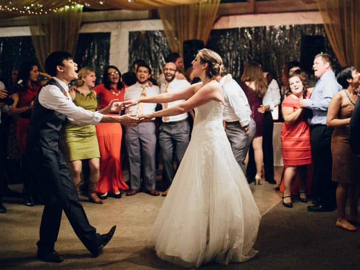 We used Jess’s paternal grandparents’ tea set for the Vietnamese tea ceremony we incorporated into the wedding. We also had one of Kim’s best friends perform the ceremony, and both our day-of coordinator and DJ were friends from Kim’s college days at GW. Our ceremony combined traditional elements – like our vows – with elements of a Vietnamese marriage: the groomsmen carried gifts to the bride’s family down the aisle; Kim’s mother placed earrings on Jess as a sign of welcoming her into the family; and we had a Vietnamese tea ceremony during the service where Jess’s grandparents and all of our parents gave us advice for a successful marriage.