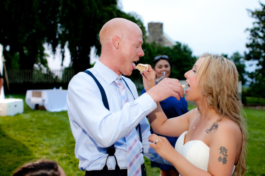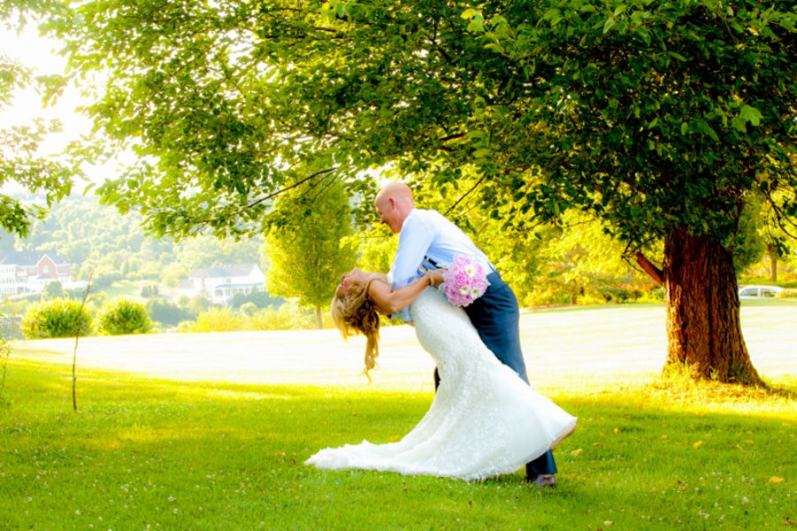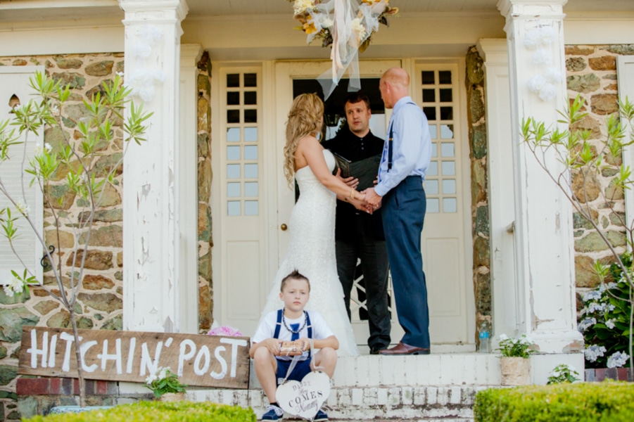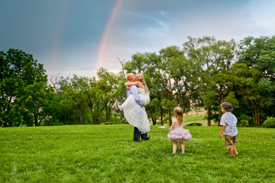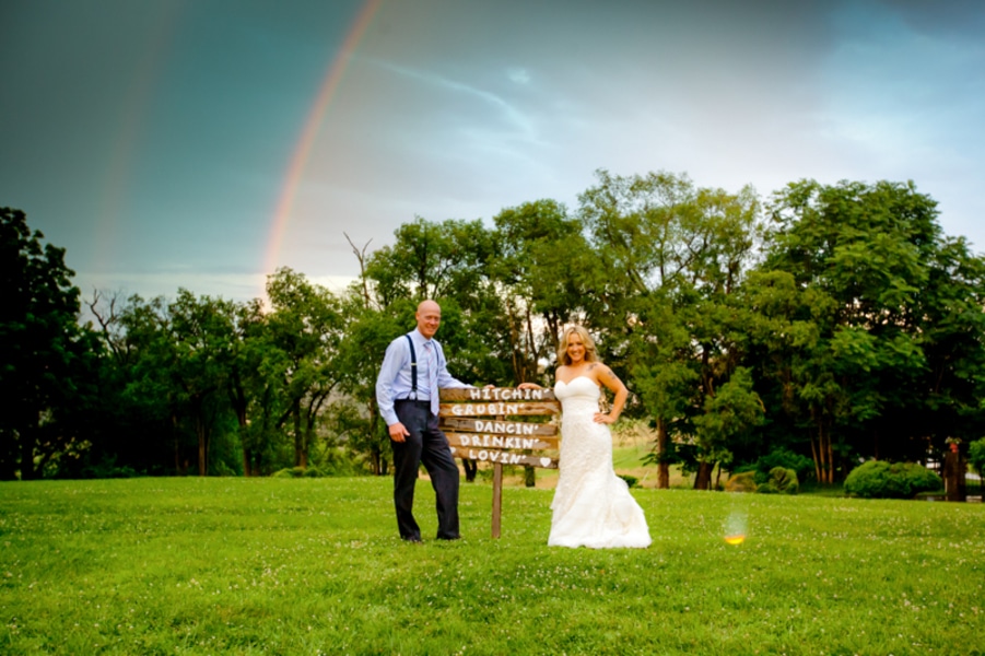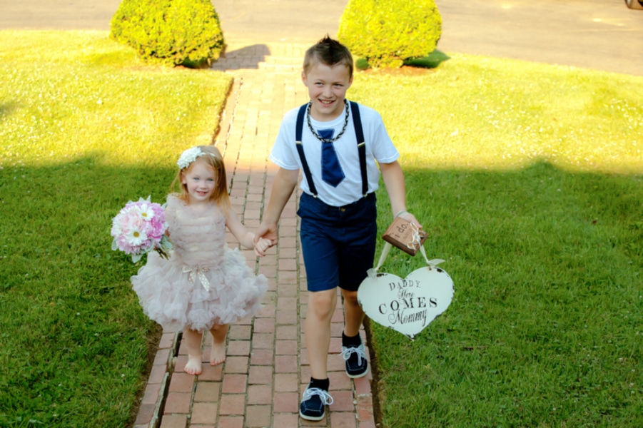 We wanted something fun, simple, and affordable – our 6 acres was the perfect outdoor venue. Our 2 children were in the wedding – other than that we kept in simple. No bridesmaids or groomsmen. Mostly all details were DIY – very laid-back in the fact we got married at home with our families.