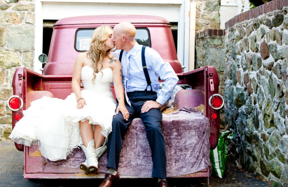 The sun is finally out in DC and I am FINALLY getting in the zone for wedding season (the cold didn’t exactly make me want to think about being outside in any sense). I had two awesome consultations this weekend with my first two May weekend brides and I am overflowing with timelines, layouts, and last minute confirmations before I head to Portland & Seattle next week. In the spirit of sunshine and love, I have a fun backyard wedding in Leesburg, Virginia to share today. Natascha & Scott got married in Natascha’s parents’ backyard in a laid-back, intimate ceremony and backyard reception. This backyard Virginia wedding had it all – handmade details, DIY projects, an intimate venue, and of course, a food truck! Thanks to VNess Photography for sharing this one!