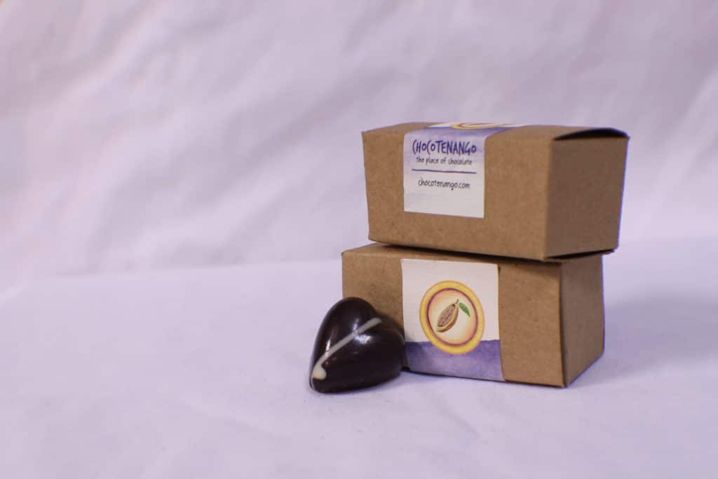From chocolate bars to truffles, molded chocolates to hot cocoa mix, Chocotenango‘s recipes combine the best blended chocolate with bold, yet balanced flavors.  With 20 years of experience as a professional chef, Chocotenango‘s owner carefully crafts each chocolate by hand.  While taste of our chocolates is paramount, Chocotenango also cares about the health of our customers and the world around us.  Our chocolates are made with only fresh ingredients without preservatives or extracts.  All of our packaging is made fully or partially from recycled materials and our plastic products are biodegradable or compostable.  We hope you will love our chocolates as much as we enjoy making them!