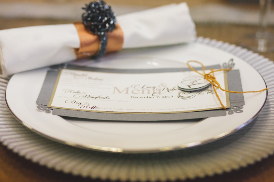 We have a lovely set of delicate engraved silver “Mr. and Mrs.” spoons my Milk and Honey Luxuries, the contemporary stationery designs by Moments of Happiness Designs and Novelties, and custom made jewelry to fit the theme and colors designed by J’Adorn Designs. And along with coffee, we designed a doughnut and coffee cake bar filled with sweets for the occasion, you can include all kinds of delicious pastries to accompany your steamy cup of coffee.