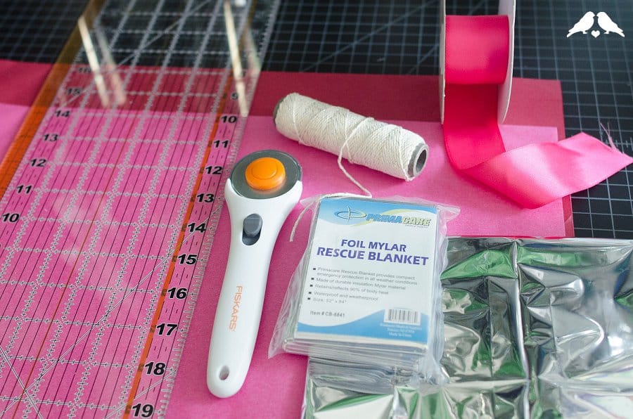 - Mylar sheets, if desired (I purchased mylar foil emergency blankets)