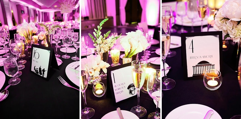 I would describe their wedding as DC chic with a modern, non-traditionalist focus. In fact, their invitation didn’t even include the word “wedding” on it! Their goal was to share a decadent meal with their friends and spend the rest of the night bringing down the house on the dance floor. Their reception entrance song, Justin Timberlake’s “Suit and Tie,” probably sums it up about perfectly!