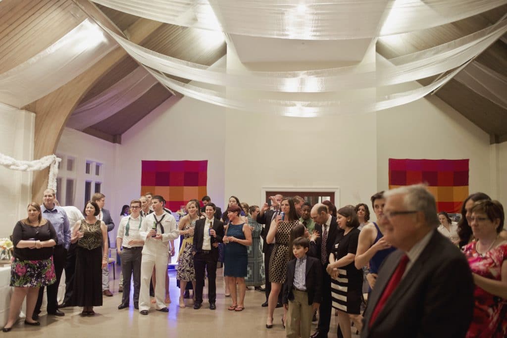 My grandmother, a former florist, flew into town the day before and immediately drove to the church to help me put together our centerpieces. Susie’s best friends from culinary school (and her bridesmaids!) drove up and helped put together the food for the reception. Our fathers and brothers helped hang our ceiling draping and our mothers ran all the erroneous pre-wedding errands that no one else wanted to do!