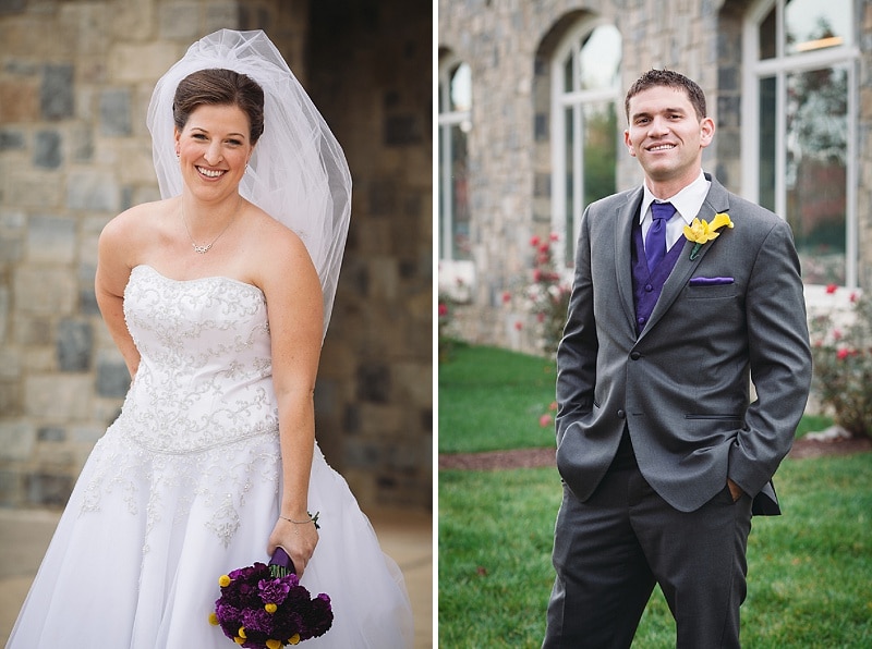 One part simple country club ceremony, another part art gallery reception with a theme of FUN! Emily & Tim rocked their wedding with bright purple and yellow colors, Monsters Inc details, and a rockin’ dance floor (with some seriously amazing dance floor shots). Thanks to The Girl Tyler for submitting today’s real Virginia wedding.