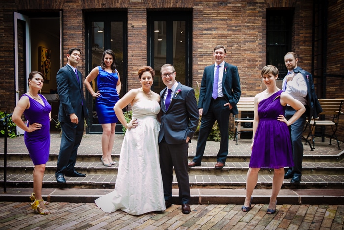 I wanted to keep the colors simple so they would make the rest of the details and decisions easier, not harder. I chose a range of purples matched with gold and ivory, thinking purple was a flexible palette that wouldn’t clash no matter what shades came out. The bridesmaids got to choose any purple dress they liked, and they came out pretty different!