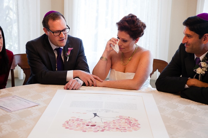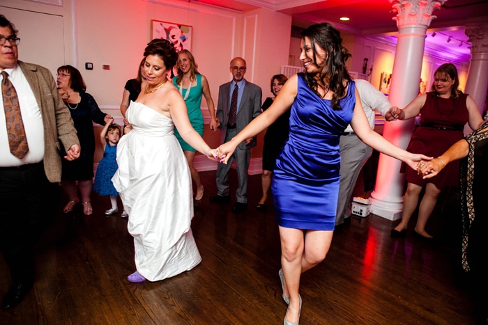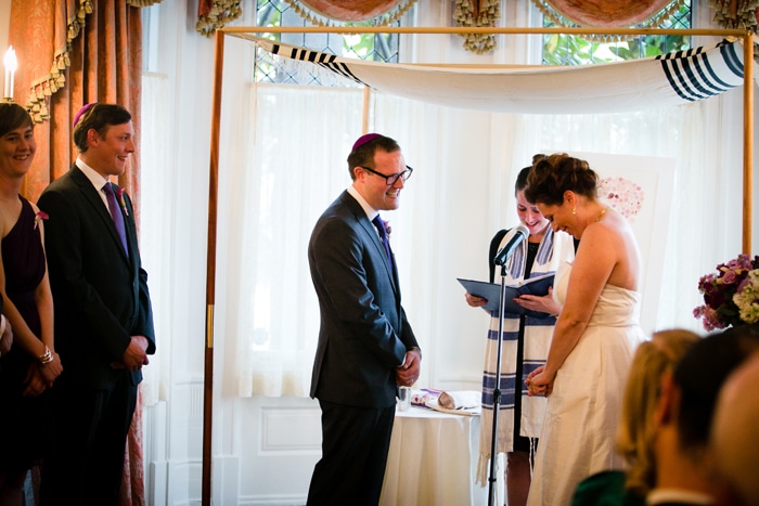 The direct translation of the traditional Sheva Brachot (Seven Blessings) really didn’t jive with our sensibilities, so we found a middle ground. We found a modern interpretation of the blessings that was approachable and meaningful to us, then asked each member of our wedding party to read one blessing. The Rabbi chanted the original blessings in Hebrew, so guests who are used to that got to hear the familiar tunes. It turns out our Rabbi has a beautiful voice — double bonus!