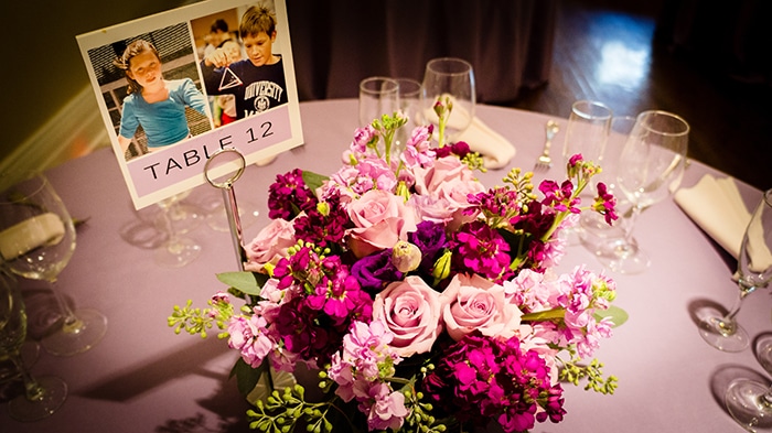 Sara’s parents also took on the table cards, and they really went above and beyond! They scoured through piles and piles of family photographs, and paired up pictures of Sara and Matt at similar ages. The numbers may have been weird (to capture the best pictures, of course), but the cards were a big hit!