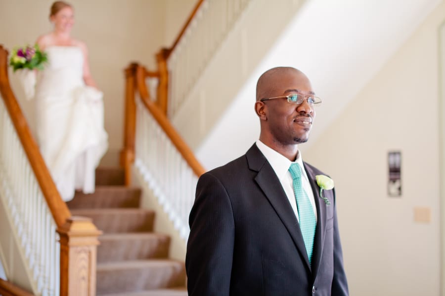 We wanted a wedding that was classy and sophisticated but also down to earth. Our wedding ceremony was at our beloved church, Capitol Hill Baptist Church in Washington, DC. The church building is beautiful with stained-glass windows and has a classic feel to it. Our reception was at Glenview Mansion and we absolutely loved it. When we were looking for venues, we instantly loved it for it’s beautiful garden and stunning architecture. Our colors were purple and teal and made our late summer wedding even more lovely!