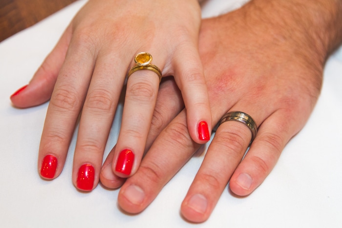 Cost: We paid for the wedding ourselves. We managed everything we needed for about $10,000 – including travel, hotel, wedding attire, rings, reception food and alcohol, photography and flowers.