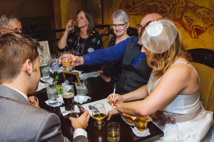 The sister of the bride and the groom’s best friend were a big help in getting pretty and holding onto the rings. They also had double duty keeping us caffeinated, fed and watered. And what great (unexpected) speeches they gave at the celebration reception!