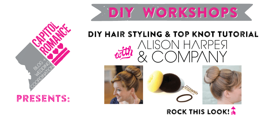 Romancers! It’s time for another Capitol Romance DIY Workshop! Early bird tickets are now on sale for our April 12th workshop with Alison Harper & Co – one of the Washington, DC area’s LEADING Hair & Makeup companies. We’re SO excited to host Alison so she can share her top tips & secrets with attendees to getting gorgeous, beautiful hair for your wedding, engagement pictures, or ANY formal life event!