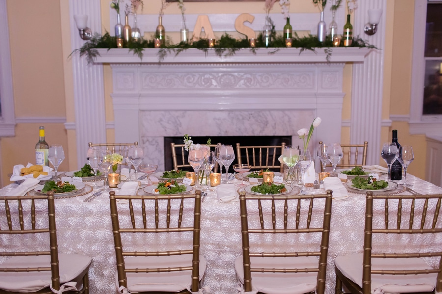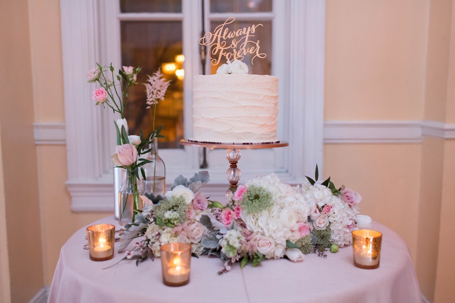 Blush, white, and gold makes SUCH a romantic color palette for a wedding – especially when you throw in fireplaces and a wintry Josephine Butler Parks Center – one of my favorite venues in DC! Amanda & Sean wanted their wedding to feel more like an intimate dinner party, then a crazy reception and their decor & design (executed by Pure Whimsy Events) accomplished this perfectly. Check out the beautiful details of this intimate, DC wedding below!