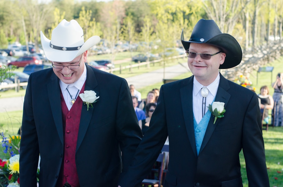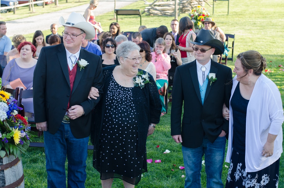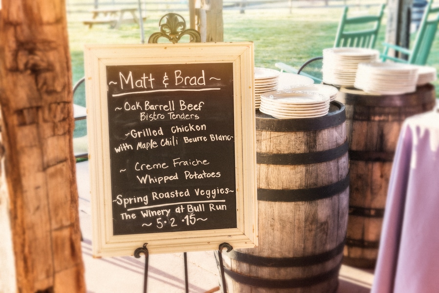 The gentleman chose to have their ceremony and reception at The Winery at Bull Run, as they love wine and history~ the venue is adjacent to the Historic Manassas Battlefield. Both of the grooms mothers gave them away!