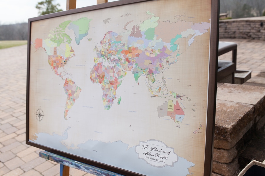 To bring some more pieces of our lives to the event I had my students write a project on “Love”… they wrote all about what love means to them, from kisses from their pet dog, to time with their families. The map we printed was a lot of fun for us! Instead of a traditional guestbook we had everyone sign a tag with the name of a country we should visit. This also suited us because we like to travel and we wanted this to be reflected in our wedding.