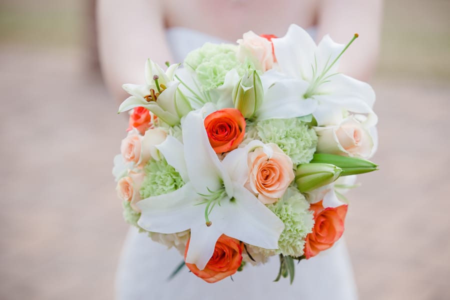 The colors evolved for us. Adam’s favorite color is blue, and mine is orange. Orange stuck as the planning continued but blue developed in to an earthy green that complimented the orange hues. The colors suited the season, bringing warmth to a chilly night and added green to the landscape that was still coming out of winter.