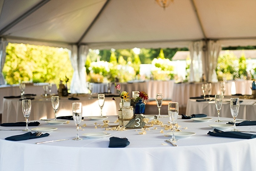 Our centerpieces were made from birch trees in Maine on my Aunt and Uncles property. My cousin cut a few down for us and my dad strapped them to the roof rack and drove them back to Delmont, PA where constructed them. Left over “wood cookies” as my cousins called them, served to be our place cards. It’s these tiny details that made the day so special for us.
