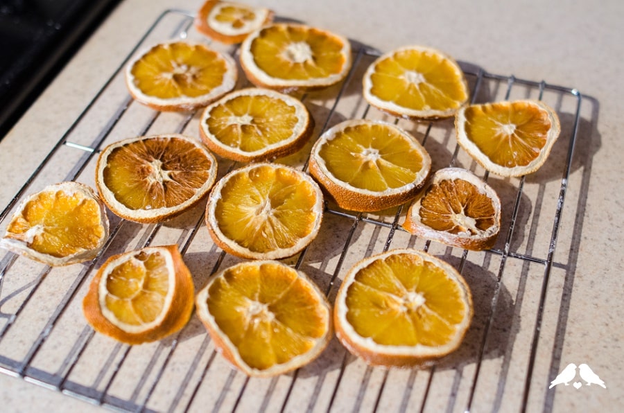 Place the rack onto a baking sheet, and back/dehydrate the slices for 2-3 hours or until the centers are translucent. Let the slices cool, then they’re ready to use!