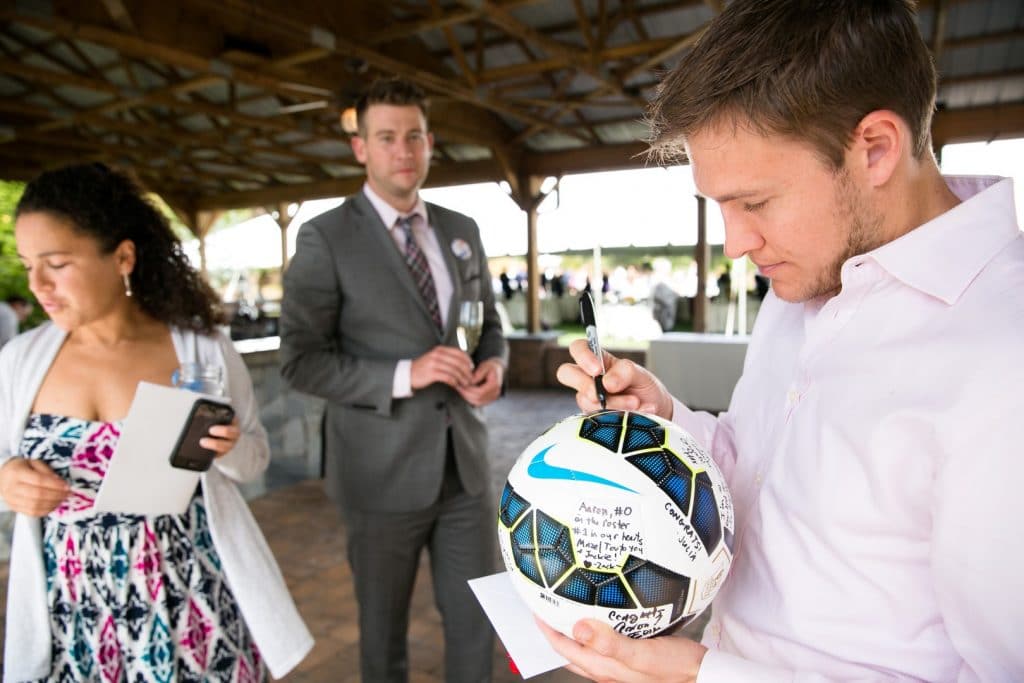 This wedding had it all. Mini-golf (yes, actual mini-golf at the reception), high-fives, a soccer ball guest book, a game of two-hand touch football, s’mores & firepits, so much family involvement AND MORE. Jackie & Aaron’s wedding was so them and from the looks of these pictures, SO fun. A big THANKS to The Plannery for sending them our way to share!
