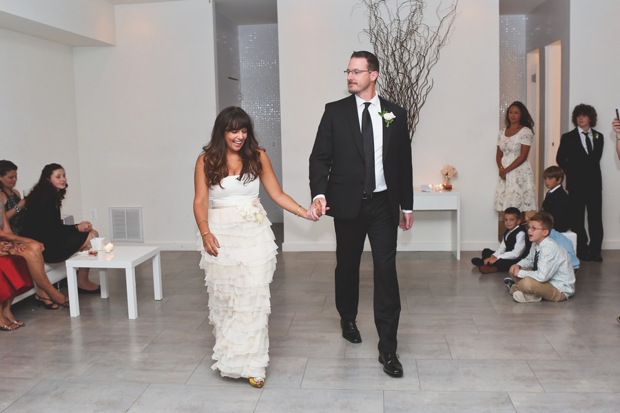 Jay’s children (Gabby, 15, and Adin, 12,) were our “Best People,” with my sister, Courtney, as the Maid of Honor. I walked down a makeshift aisle to Coldplay. Our ceremony was short and sweet, yet deeply personal, with guests physically encircled around us. The energy was palpable. We wrote our own vows; I went playful, he went sentimental.