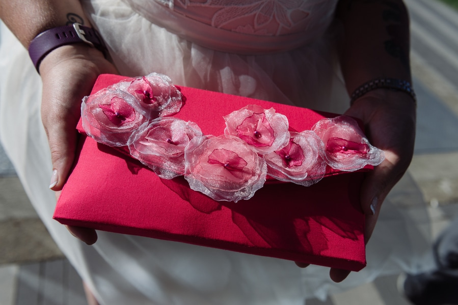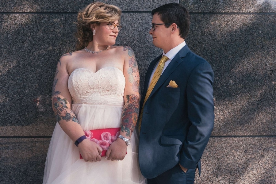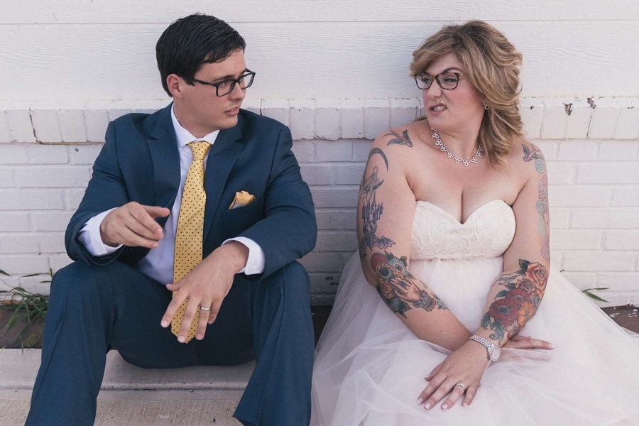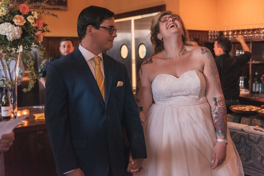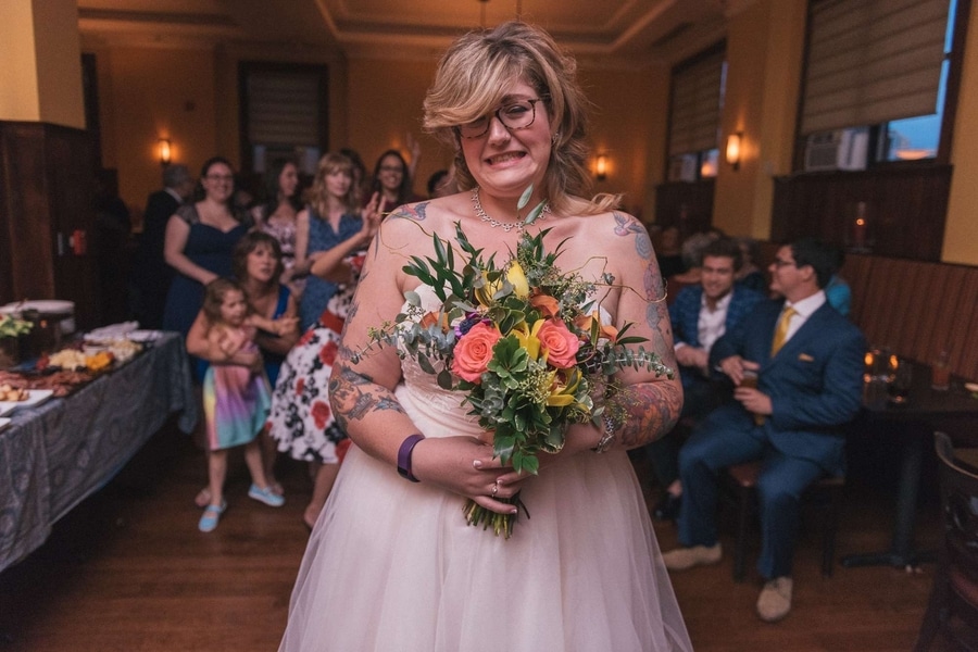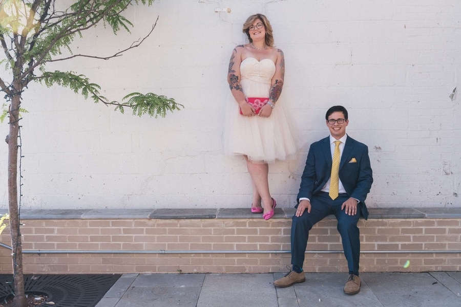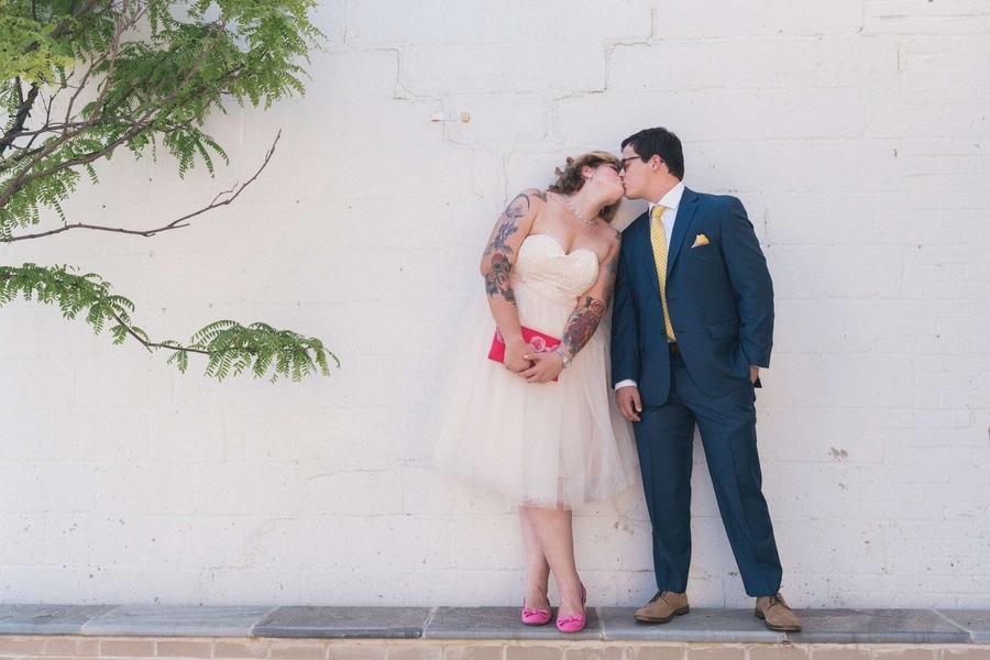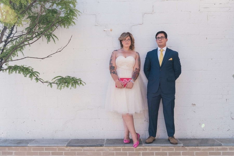 I thought I would be able to finally start running again yesterday, but this cold is STILL hanging around and between the tundra temps & WIND, it just didn’t happen. But I haven’t run in a WEEK now and I need to run 10 miles in a 3 weeks, so it HAS to happen today. So please send me all the motivation you can spare. For today though, we have an ADORABLE intimate wedding that has so many pops of fun, and the most chill engagement story ever. Plus I am in love with the bride’s ink (of course) & the bright colors for the reception. Take it away!