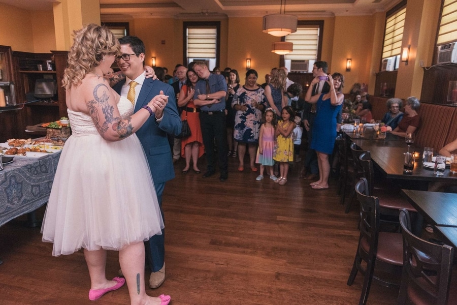 On the flip side, my biggest wish for a wedding was to have lots of flowers, finger food, cake, and get to wear a really fun dress, so we settled on the civil wedding – restaurant cocktail party set up. I immediately thought of Liberty Tavern because it hit the right tone, tasteful but casual and I’d always really liked the food there, additionally, it’s less than a mile from where Jake and I met, live, and had our first date, it’s a staple of North Arlington and a familiar place. It was the first place I visited and because of how enthusiastic the staff were about a wedding, and how wildly accommodating they were to my ideas and schemes, it was an immediate perfect fit.