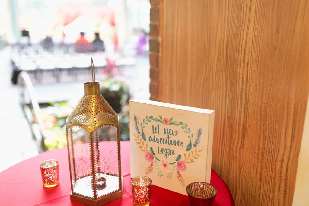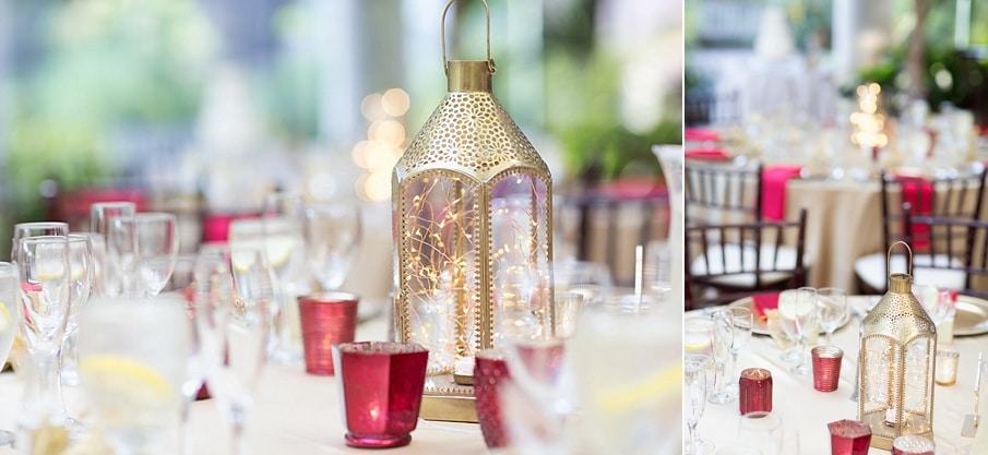 I love soft lighting and twinkle lights, so I chose to have gold lanterns filled with fairy lights as my center pieces. I did not want to take away from the beauty of my venue, I wanted to flow effortlessly with it. With the softly lit lanterns, twinkle lights in the indoor trees, flowers everywhere, it was the perfect scene.