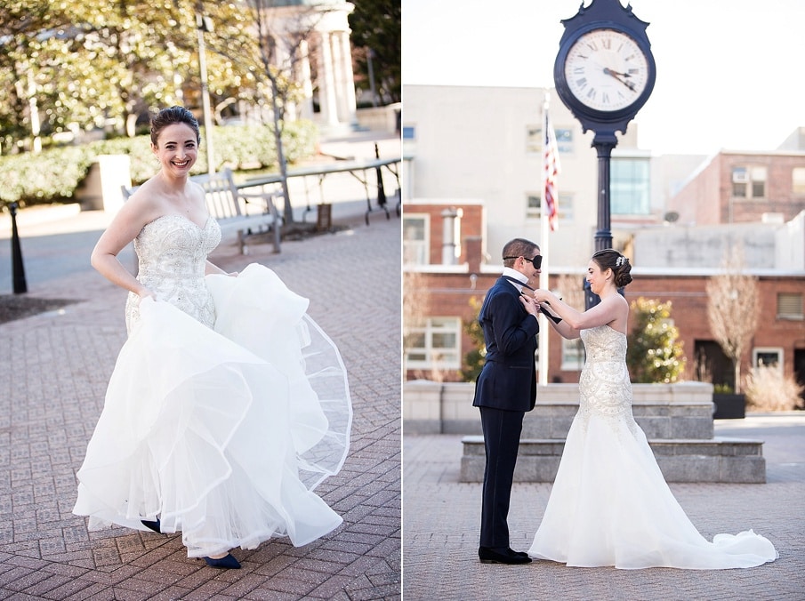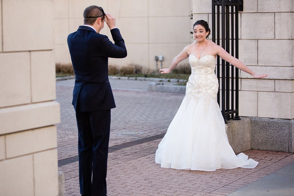 Phil and I did a first look where we first fell in love, The George Washington University. I met him there and he put on a blindfold so I could tie his bowtie. Then the big reveal. It was wonderful. We were able to soak in all the magic of the day and the night to come without the chaos.