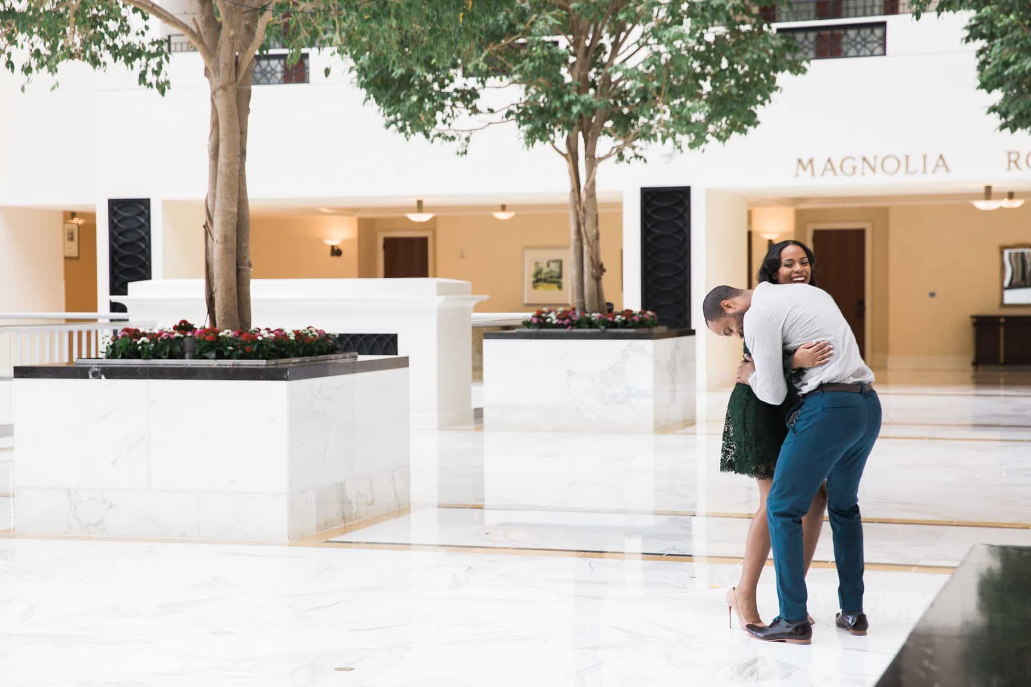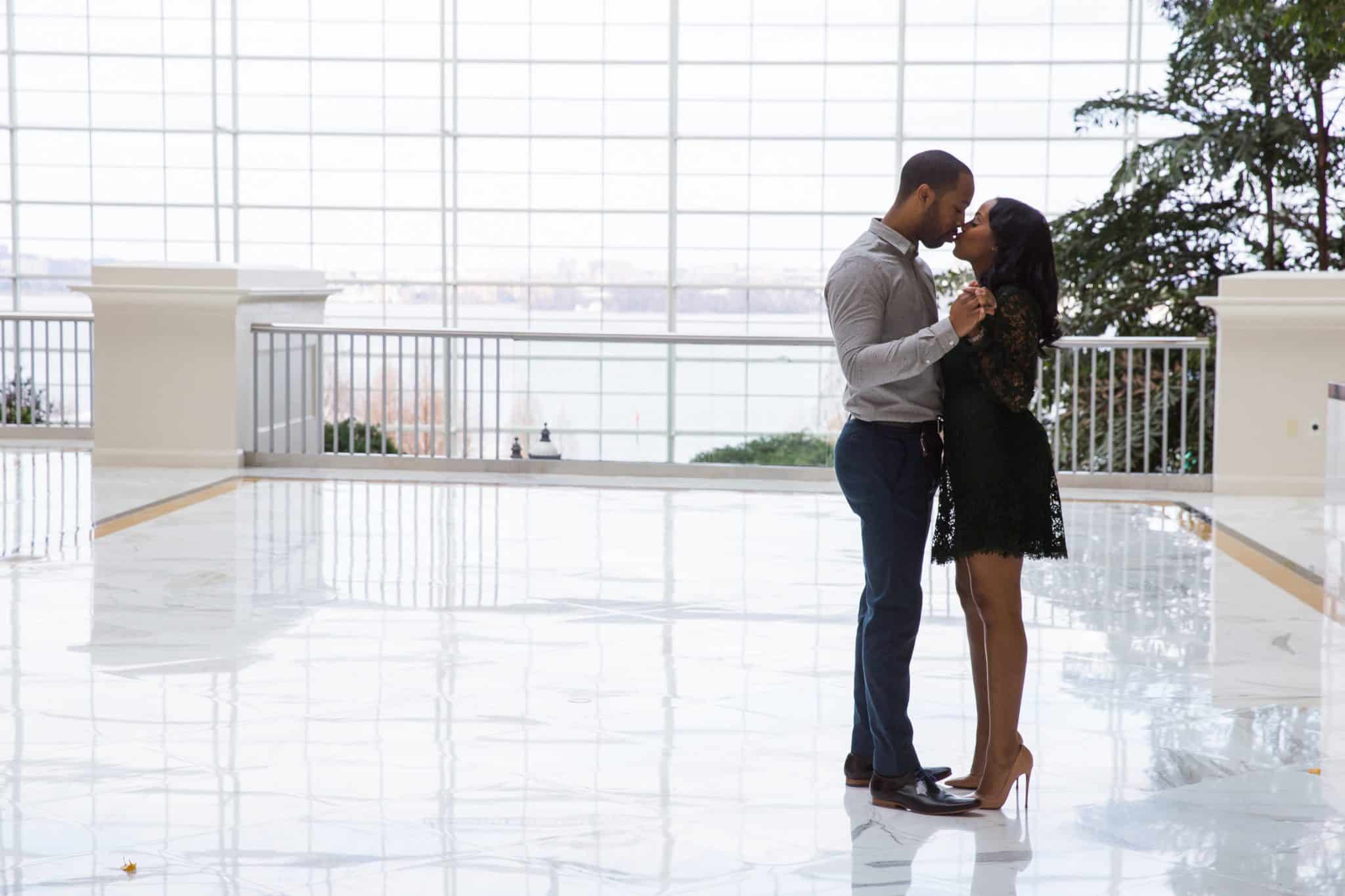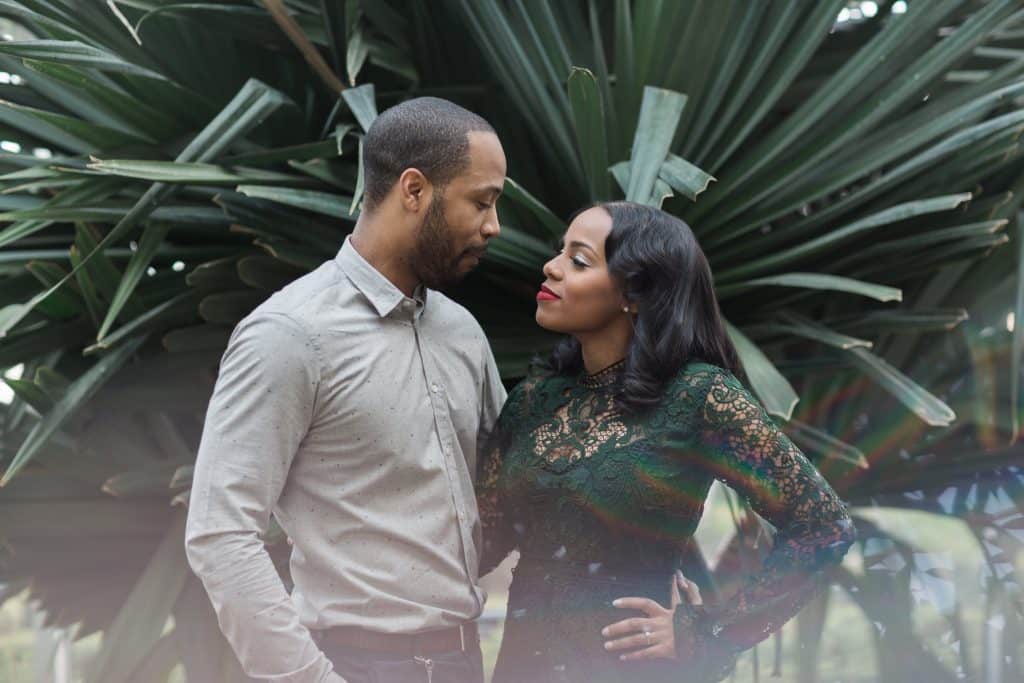 Attempting to return to the normalcy of blogging with a super gorgeous engagement session at the Gaylord National in National Harbor, Maryland. I’m in LOVE with the green lace dress that Alonna wore for the session, and the way it plays off the tropical greens in the interior of the convention center’s lobby. These two are gorgeous but also full of smiles. I was happy to see some great shots of the two of them laughing together in the submitted set – I almost ALWAYS opt to publish those kinds of pictures here, than too many posed ones. They are SO much more infectious in my opinion. Ok enough from here, here’s some love for your Wednesday.