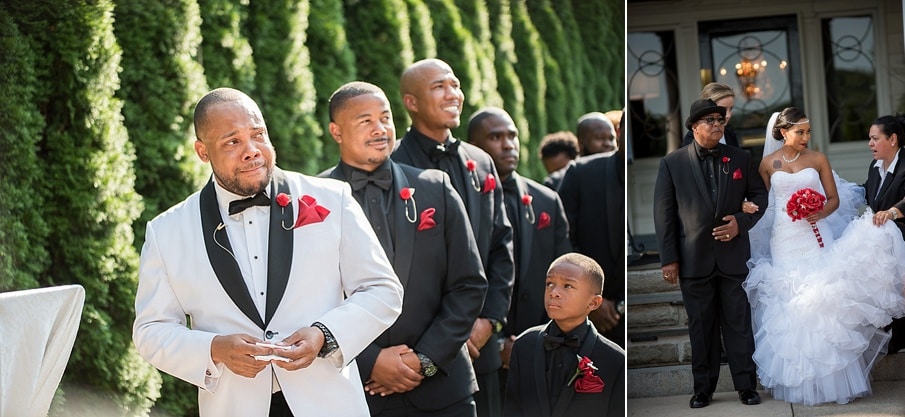 Getting back into the blogging groove with this stunner of a Maryland wedding up at the Mansion at Valley Country Club. Jaymie & Preston used bright red, black and glitz as their color palette and the LOVE of this day totally shines through in the pictures. I love how they went total glamour with the wedding, but still found ways to incorporate their personal preferences, namely a superhero themed wedding cake & some sick kicks for the reception. Check out their beautiful wedding day & let’s get this week started!