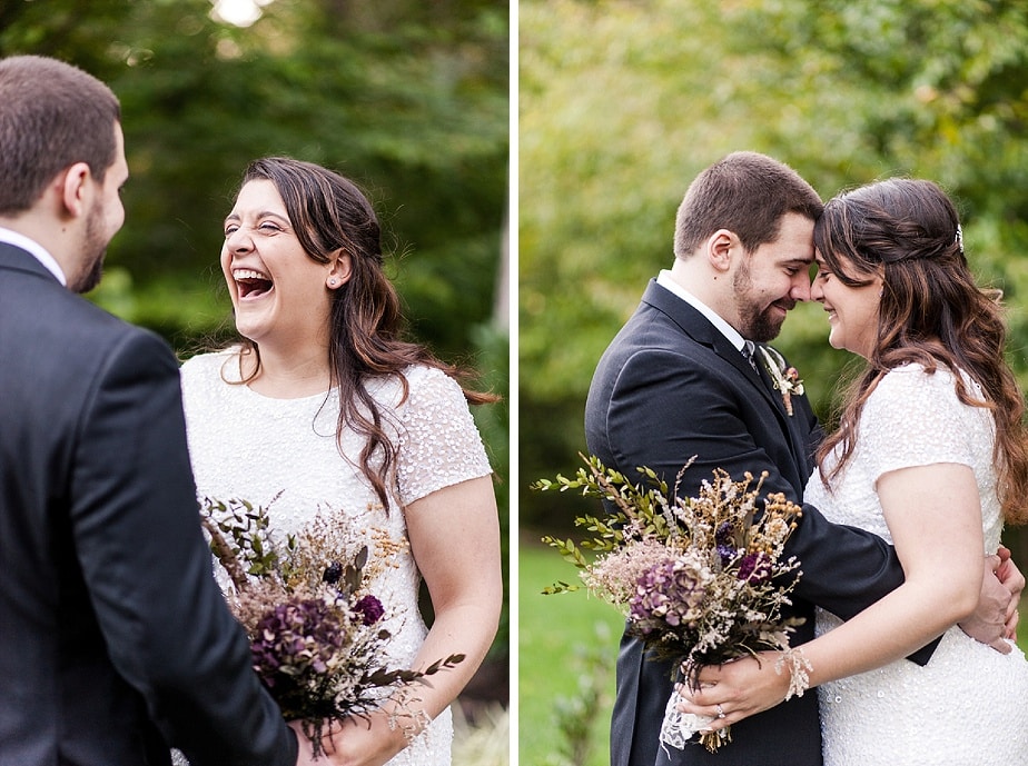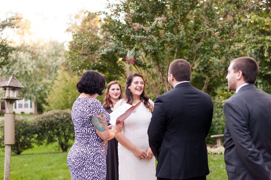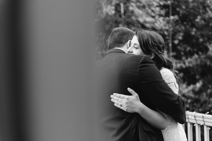 They both got ready in her grandparent’s home as well in a very relaxed environment. Guests gathered on the deck over looking the back yard for the nuptials and then dined in the backyard together at one long table. At the beginning of the ceremony the couple and their guests let balloons go with the names of loved ones who had passed and couldn’t be with them on the day. It was an evening of smiles, laughs, tears, and love.