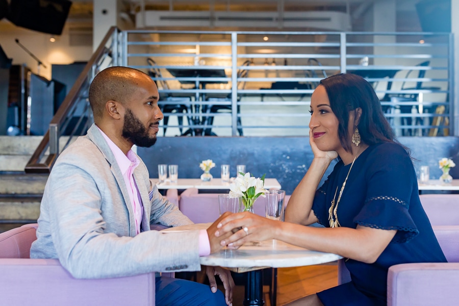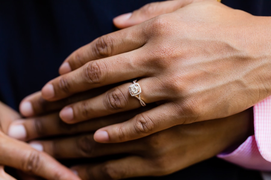 After three years of dating, David decided to propose to Meredith during a romantic trip to Charlottesville, Virginia, home of Meredith’s alma mater, the University of Virginia. But just days before the trip, Meredith became very ill and the trip was cancelled. Once Meredith was feeling better, David took her out to see the not-at-all romantic movie “Moonlight,” followed by dinner at one of the couple’s favorite restaurants, Himitsu.