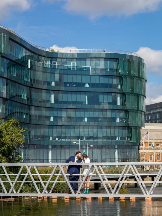 The bride is wearing a custom made dress by local designer Syreeta C Fashion. All the materials are not only 100% vegan, but entirely ethically sourced with environmental consciousness in mind, showcasing certified organic cotton sateen. It is timeless, minimal, and clean, allowing the bride’s beauty to shine and versatility of creative accessories.