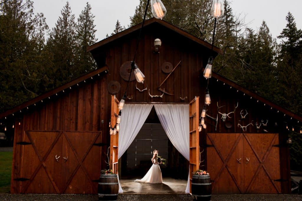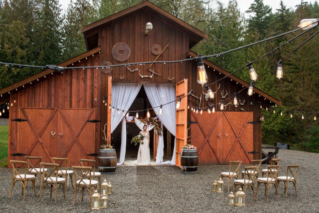 From the photographer: “We’ll shoot rain or shine!” is what I remember telling Diana, the wedding planner of Passionate Weddings, when we started organizing a styled shoot at Winter Green Weddings venue in Buckley. The Pacific Northwest winter didn’t let us down either. Blue skies and sunshine teased us the day before the shoot, only to rain throughout the entire shoot. Thankfully everyone was prepared for it, and the venue has just as beautiful a space indoors as it does out.
