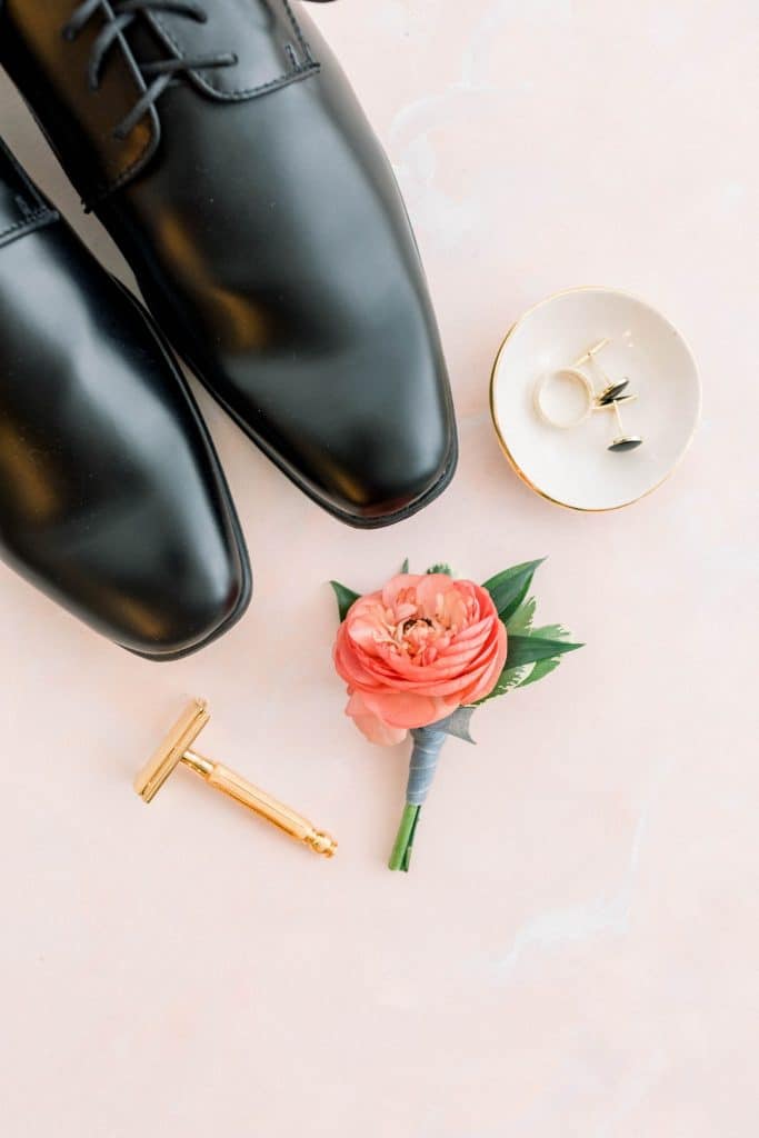 Photographer: Kourtney Fossaluzza Photography | Venue: Cornerstone Manor | Cake: Tres Belle Cakes | Decor: Fox Wedding Designs | Florist: Floral V Designs | Linens: Kosins Tents & Events | Calligraphy: Jen K Calligraphy | Stationary: Southbound Joy Stationary | Bride’s Dress: BoChic Bridal Boutique | Bride’s Shoes: Bella Belle | Groom’s Attire: Generation Tux | Hair Stylist: Alea Beauty | Jewelry: Shop Moss & Honey Designs Jewelry |