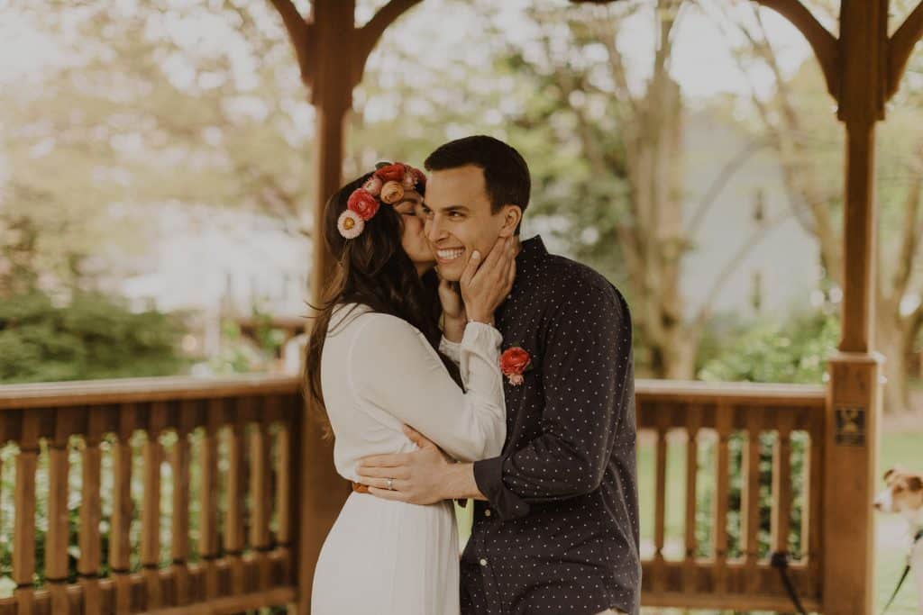 How did you guys feel/ what was going through your head when you realized you were going to have to completely change your wedding day? Initially, we were extremely disappointed. We’d been planning our May wedding for over a year and had to cancel it. It was sad at first, but once we decided to elope and have an anniversary party next April, we were excited! We’re lucky to get the best of an elopement, an intimate symbolic ceremony with our close family and friends, and a sizable celebration.