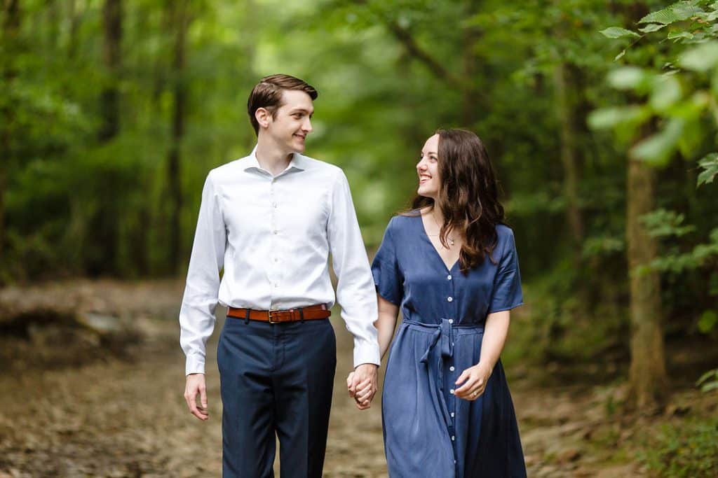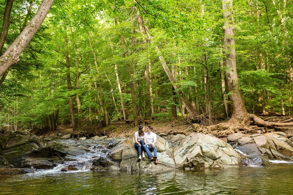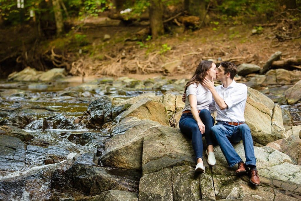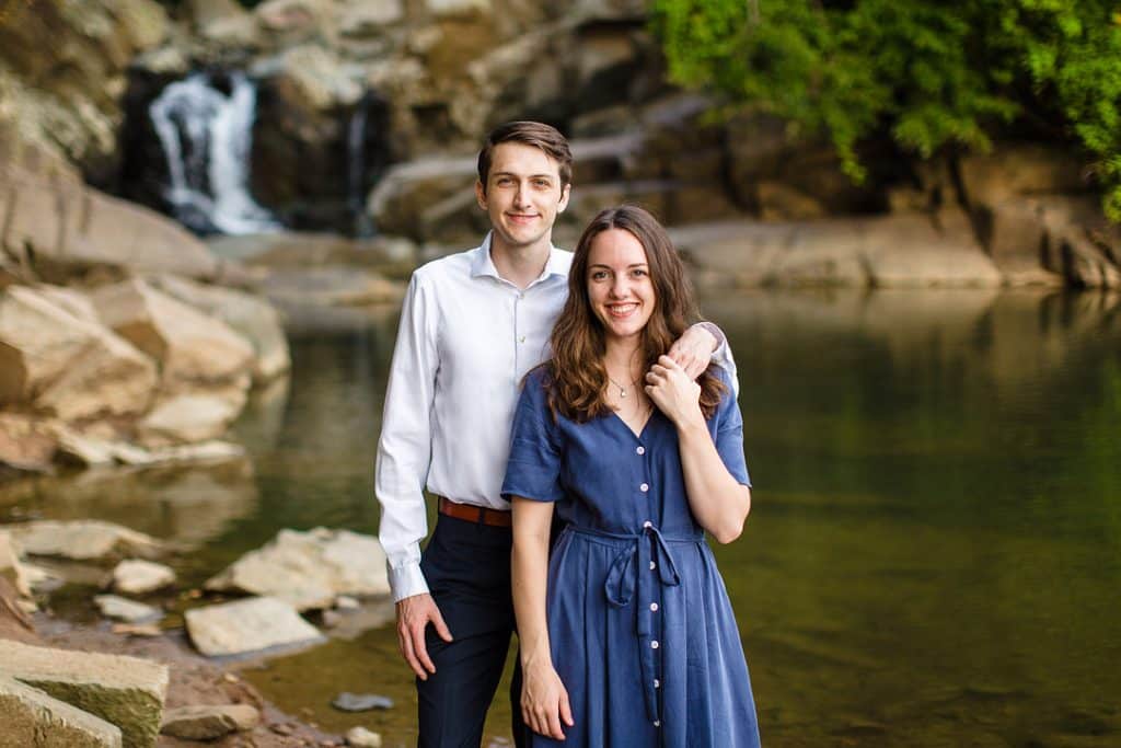 Lauren knew the proposal was coming (we’d been talking about it for a few months), but didn’t know when or where. We went to go see the cherry blossoms in downtown DC with a few friends. Sam brought his camera, and we’d all been passing it around taking pictures of the trees and each other. (Unbeknownst to Lauren, Sam was freaking out the whole time because the place was packed.) We got to this nice, less crowded spot by the river and our friends helped Sam persuade Lauren to take one more photo, which turned out to be that photo, with him on one knee. In hindsight, Lauren can’t believe she didn’t pick up on some clues beforehand.