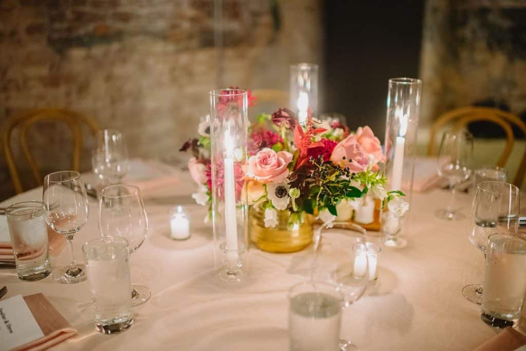 We said our wedding theme was industrial, modern, and chic. I have always been in love with the idea of an industrial venue juxtaposed with soft florals, pops of color, and lots of evergreen. The Winslow was the perfect industrial backdrop, with the history and charm of Baltimore (where we started dating), all wrapped into one.