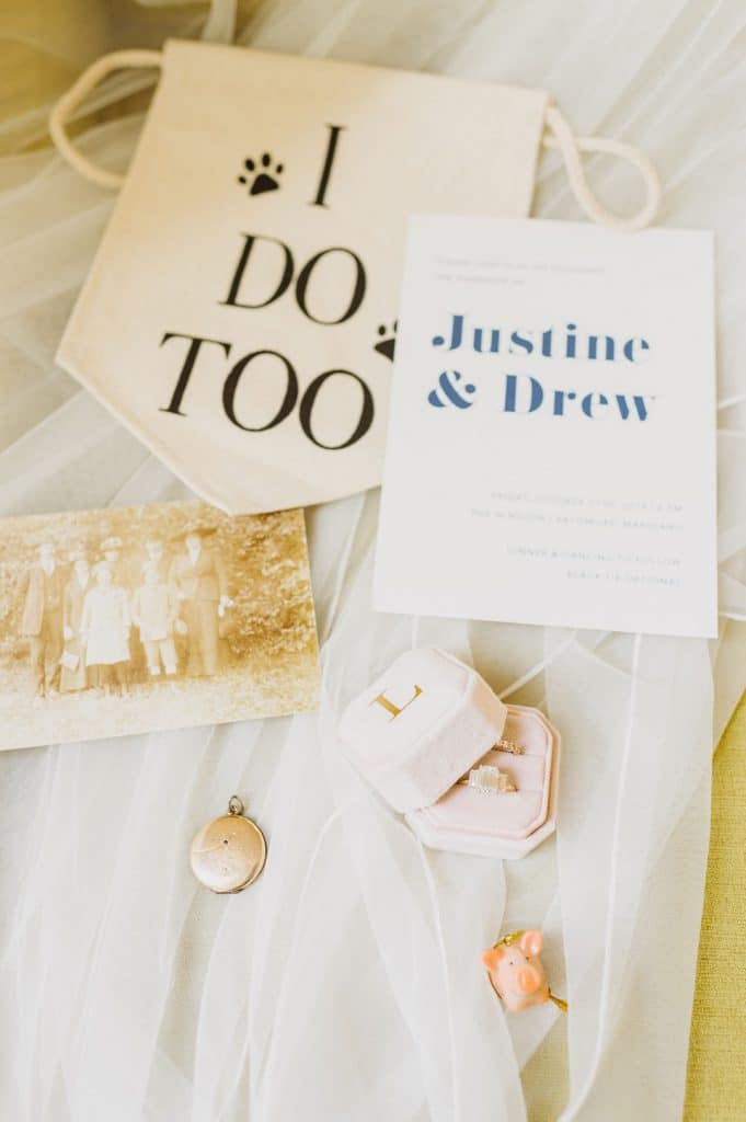The only other element I insisted on was incorporating our dog, Charlie. Although we were able to do politics with her beforehand, we still wanted to have a piece of her there with us. We used Etsy to create custom gold-foil embossed cocktail napkins with her likeness and our last name on them throughout cocktail hour.  I’m still sad I didn’t order more for us to use for special occasions!
