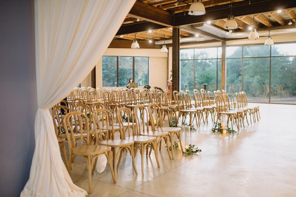 Today’s wedding features a gorgeous mix of an industrial venue with lush greenery and bright pops of color. You may remember Justine & Drew (and their adorable dog) from their engagement session last week, and today we have their wedding!