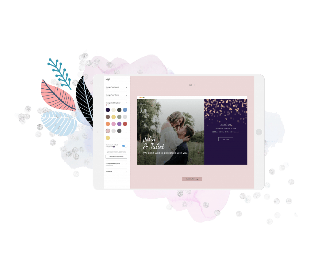 Sometimes getting information out there quickly is essential, and snail-mail just won’t cut it. Using online invitations can allow you to communicate revisions and updates to your guests in real-time. Joy’s wedding websites also have announcement banners, which effectively keep new information at the top of everyone’s mind when visiting your site.