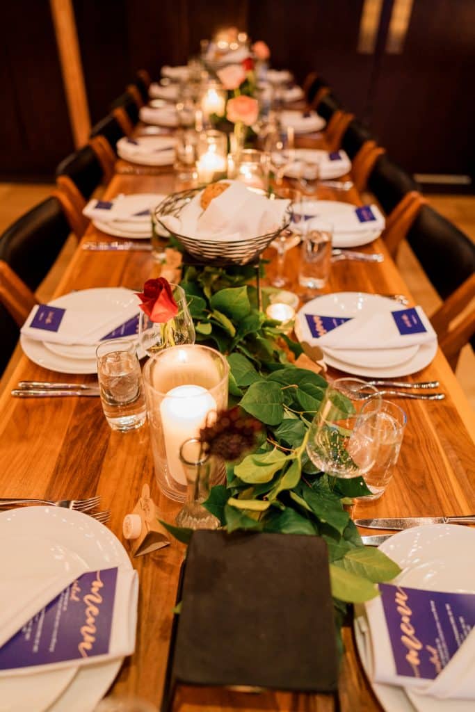 We didn’t really have anything ultra special or unique when it came to decor exactly, but we knew we wanted tons of greenery and candles to warm the space up on a cold February day. Our florist, Rockingbird Flower Company, KILLED it with overflowing flowers on wine barrels, greenery and light florals down all of the tables, and the prettiest bouquets for my bridesmaids.