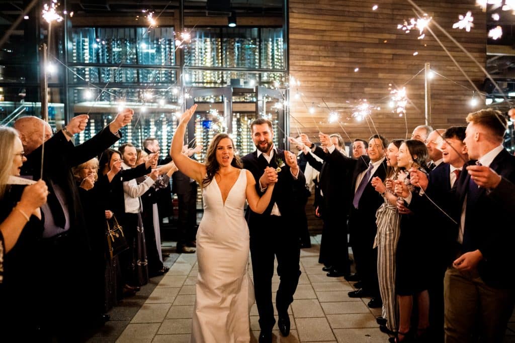 Another really special part was when my dad surprised me by wearing a white tux jacket for our father daughter dance. He had joked the whole year of planning that I wouldn’t be the only one wearing white, but I didn’t take him seriously. I found out afterward that my grandfather had done the same thing at his and my mom’s wedding, and I loved having a small bit of tradition involved in that moment. Lastly, one of our favorite memories was our last dance, which we had while the planners and Adam were getting everyone set up for a sparkler exit. It was just us and the second photographer in the room dancing to one of the most special songs for us that we didn’t use for our first dance. I still get teary eyed thinking about it!!