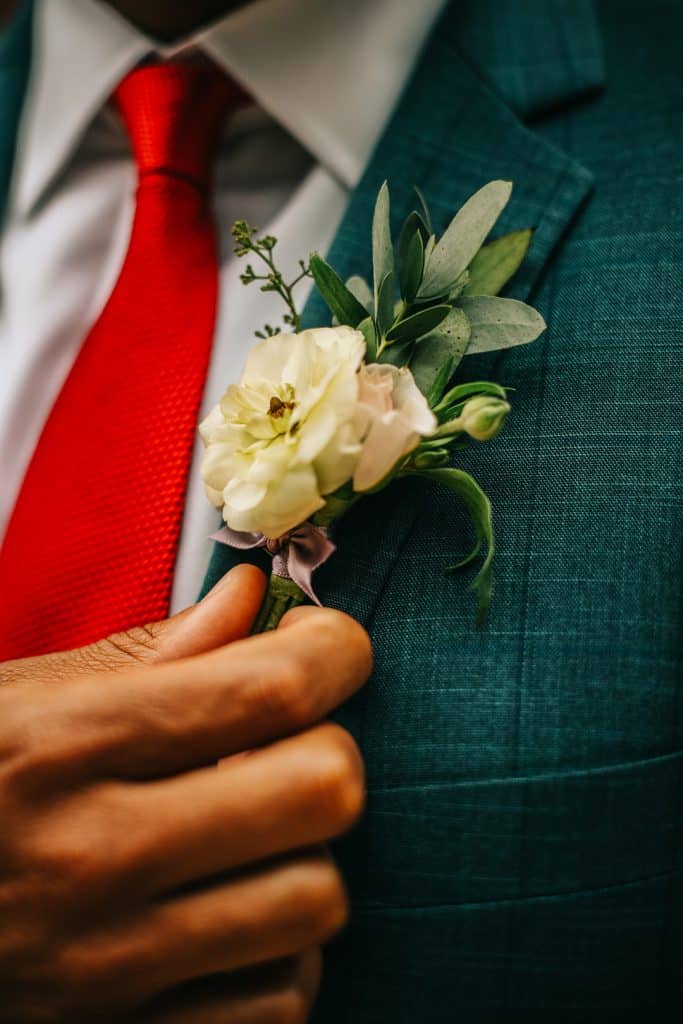 Another focal point was the bride’s dress. Since we were working on such a short timeline, we enlisted Michelle Nguyen to design and create a completely custom dress. She was asked to make a summer elopement, Bohemian-style dress which could be easily used for a rustic backdrop and/or a tropical backdrop, and per the bride’s request, off the shoulder with a small train.