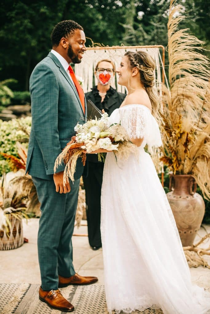 Pat yourselves on the back because we’ve made it through another week! I have my first wedding since February tomorrow, and I couldn’t be more excited about it. While I’m just coordinating the ceremony, and it will be far less demanding than a normal wedding day, I’ve been craving a sense of normalcy. I’m also really excited for the nice weather we’re slated to have, and hope to get outdoors with the family this weekend. So let’s get this weekend started with some outdoor, bohemian wedding inspiration. Check out the versatility of the venue and the couple’s attire with three different backdrops!