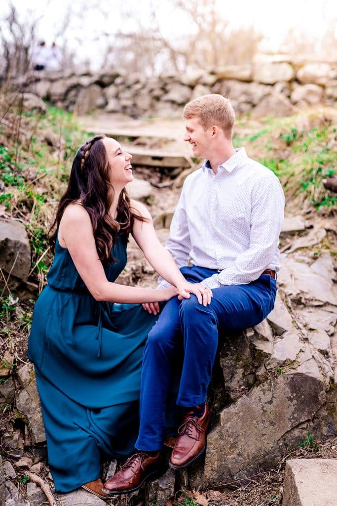 I knew I wanted something personal and relatively private in terms of the proposal, and he delivered! It was meant to be a full surprise, but when Trae started trying to plan a hike, I had my suspicions. He actually successfully faked me out with a hike about 2 weeks before the real proposal. Funny enough, I had planned to go to a concert with a friend the day he planned to propose and Trae had just gotten sick while on a business trip, but he was adamant that we needed to go on a hike that Saturday. Not Sunday, not next weekend. Saturday. So we went. I was stressed about timing to make the concert and Trae was a little easily winded as he got over a cough, but halfway through the hike we paused for a snack and he got down on one knee (or really got up on one knee because we were already sitting) and asked me to marry him! Two bystander hikers saw and cheered for us as I said yes. Then, Trae let me know the concert was off (obviously), and we killed time, enjoying the moment before going home to a surprise party with my friends and family there to celebrate the engagement. The proposal was easy to see coming, but the party definitely took me by surprise!
