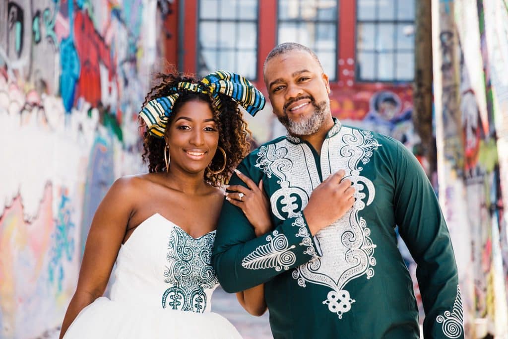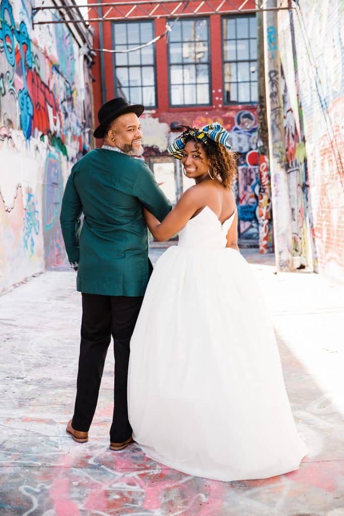 Quinn and I have been together for over 10 years. For our engagement shoot, we wanted to incorporate our creative interest and highlight a beautiful Baltimore landmark. Art has always been an important part of both of our lives. We also live in Charles Village, known as the art district of Baltimore. Graffiti Alley seemed like the perfect place to bring our personalities and vision to life.