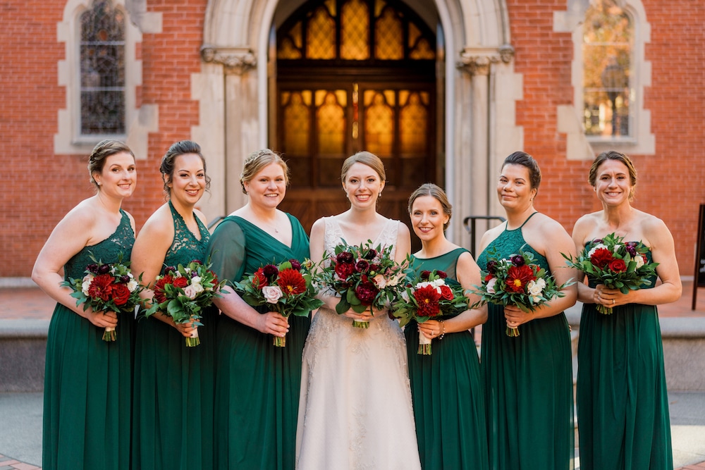 From the planner: Betty and Mike were so easy going and loved putting all of the details of their wedding together. Since Betty is a registered nurse and Mike is a doctor, they are used to making lots of quick decisions, so they were a breeze to work with! They went with a fall inspired color palette and built their florals around lush autumn greens. Their menu focused on fall favorites as well including a warm carrot souffle and seasonal stuffed chicken.