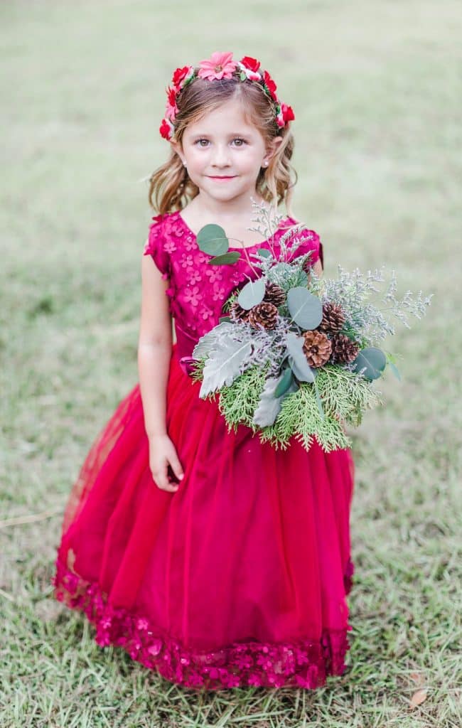 The color palette was chosen to represent a classic Christmas feel, with bright and muted reds, maroons, deep emerald greens, and cozy grey. The natural elements of the venue’s outdoor offerings paired well with the pinecones and cedar of the traditional Christmas season, and created the perfect complement to our hand designed garland. By combining the texture of the outdoor elements of the venue with soft velvets and bright Christmas reds, we were able to truly turn the space into a Christmas wonderland.